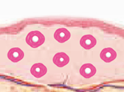 섬유아세포와 콜라겐 섬유들이 PDO 필러 입자 주위로